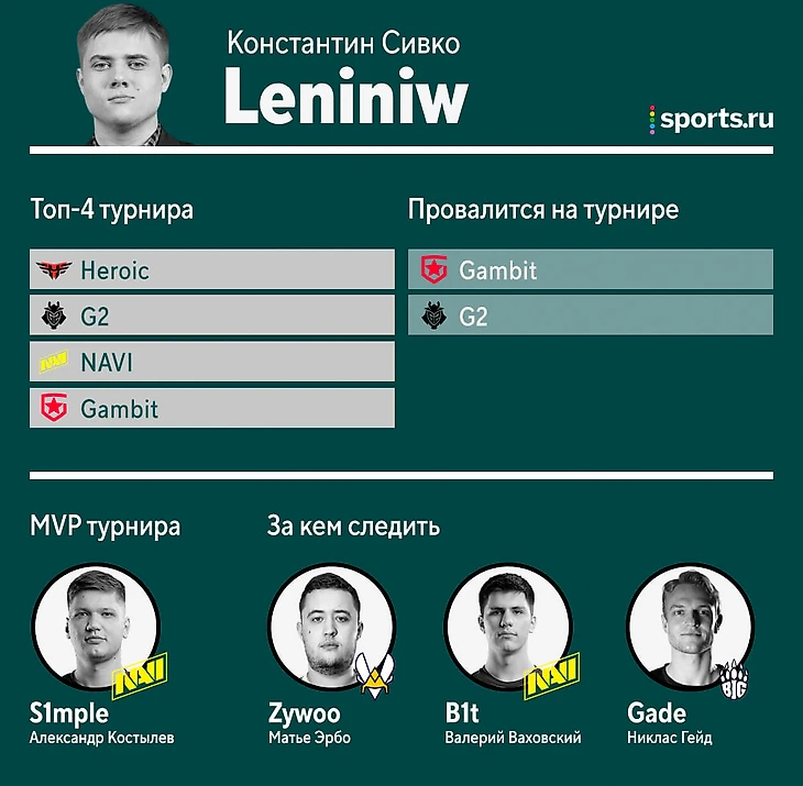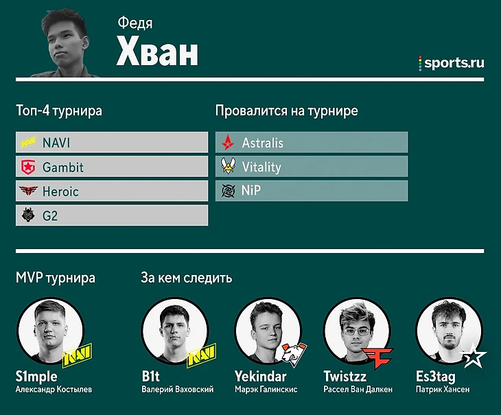 Кто из команд-фаворитов провалится? Сложно сказать, кто является фаворитом помимо топ-4, который я выделил. Скажем, если Gambit настигнет спад и они останутся за первой четверкой, я не сильно удивлюсь. К ним вернулся F1N на смену Groove, это может повлиять. Также провал может настичь G2, после череды хороших результатов они могут медленно стартовать, потому что их успех зависит от дуэта Niko+Hunter и его эффективности.