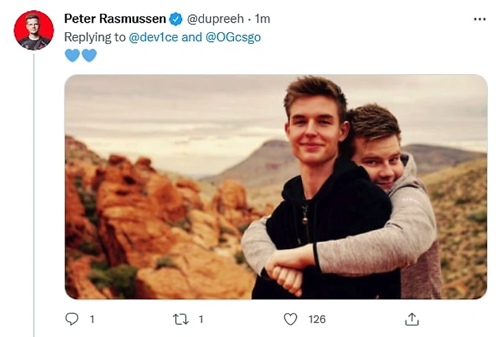В реплаи к твиту Девайса пришел Dupreeh, с которым датчанин играл вместе почти всю карьеру. Бывший тиммейт поддержал Николая, выложив совместную фотографию.