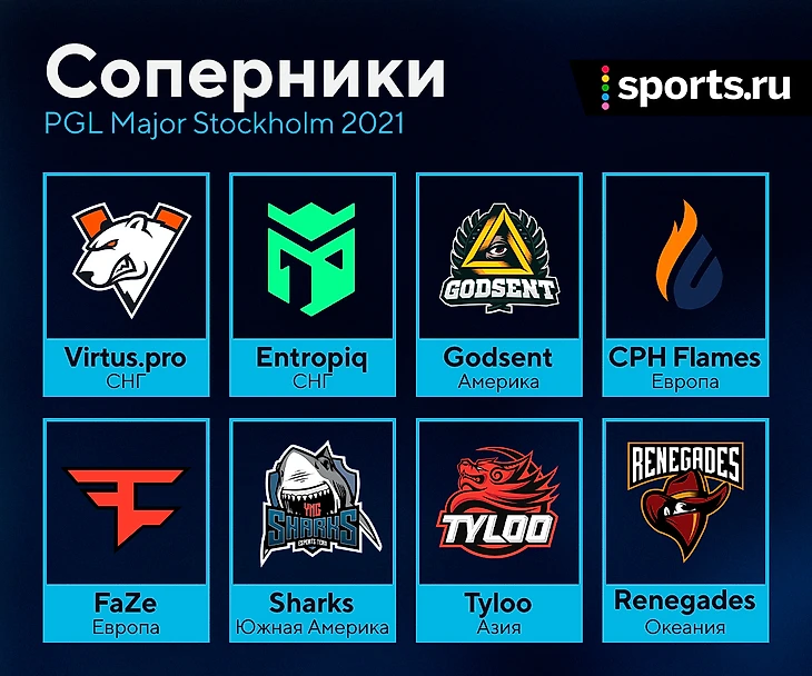Европа: NiP, Vitality, G2, FaZe, Copenhagen Flames.