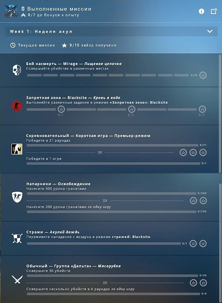 На сайте Valve заявила, что в операции нас ждет много новых заданий, но первая неделя полностью состоит из миссий, аналоги которых были в прошлых операциях. Задания первой недели пройдут больше всего людей, поэтому их стоило обновить, чтобы поднять интерес у людей к покупке. Пожалуй, это самое большое разочарование от обновления: вместо чего-то нового снова приходиться идти гриндить в дезматч, напарники и матчмейкинг.
