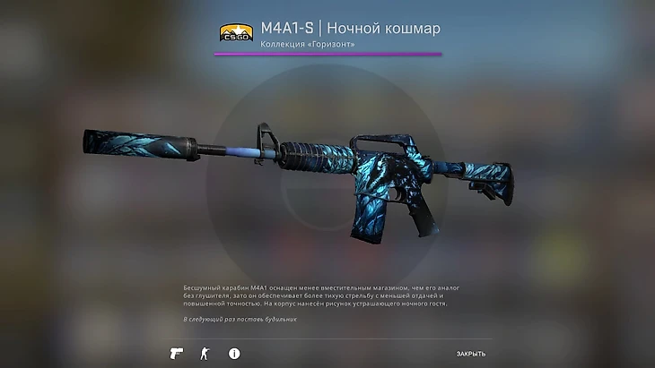 Но есть и красивые скины! Например, M4A1-S Ночной кошмар за 2 тысячи рублей. Качество – «прямо с завода».