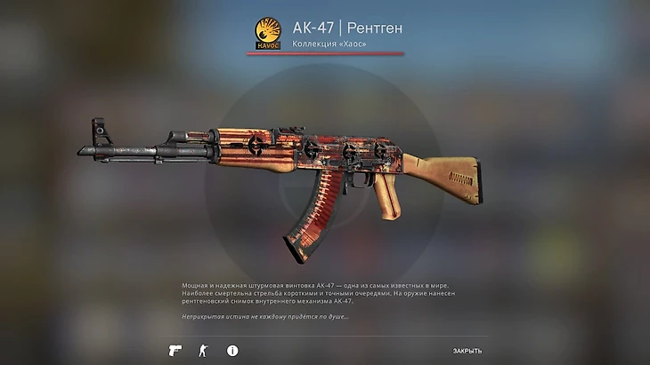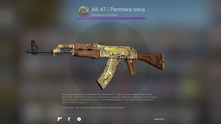 Два дорогих AK-47 из коллекций Хаос и Ancient с прошлогодней операции: Рентген «закаленное в боях» за 40 тысяч и Panthera Onca «немного поношенное за 25 тысяч.