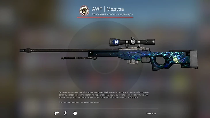 Еще один скин в трех экземплярах – AWP Медуза «закаленное в боях» за 130 тысяч рублей. Также есть AWP Принц в том же качестве за 120 тысяч рублей и Градиент «прямо с завода» за 125 тысяч рублей.
