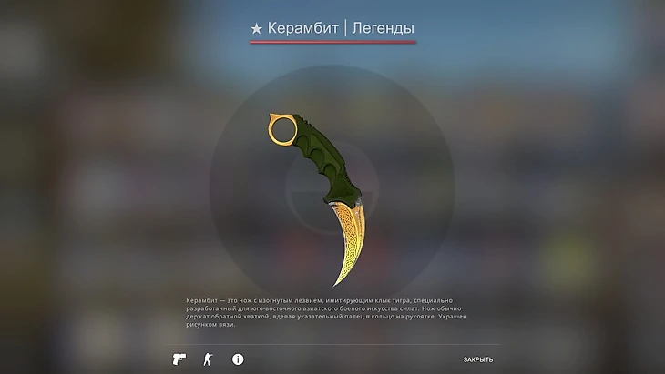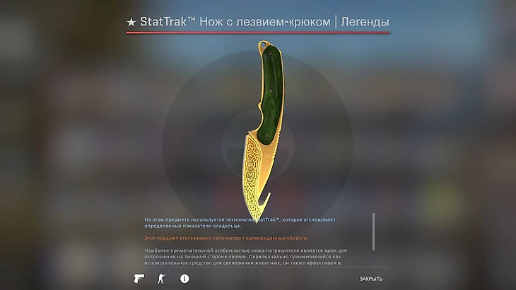 Сразу несколько ножей в раскраске Легенды: Штык-нож M9 за 45 тысяч, Керамбит за 41 тысячу, нож с Лезвием-крюком за 16 тысяч и Складной нож за 20 тысяч.