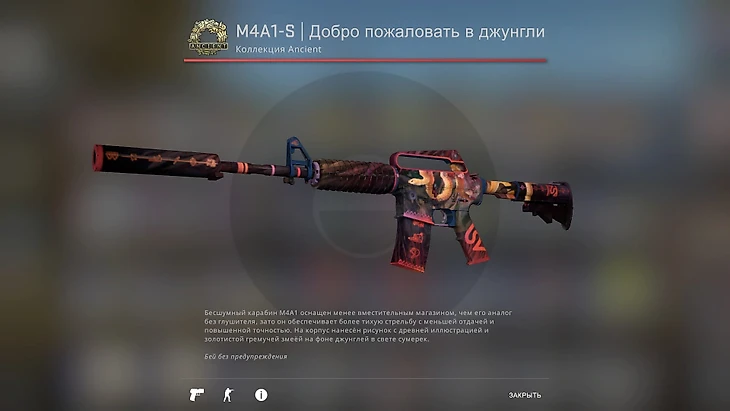 M4A1-S Добро пожаловать в джунгли из коллекции «Ancient» за 115 тысяч рублей.