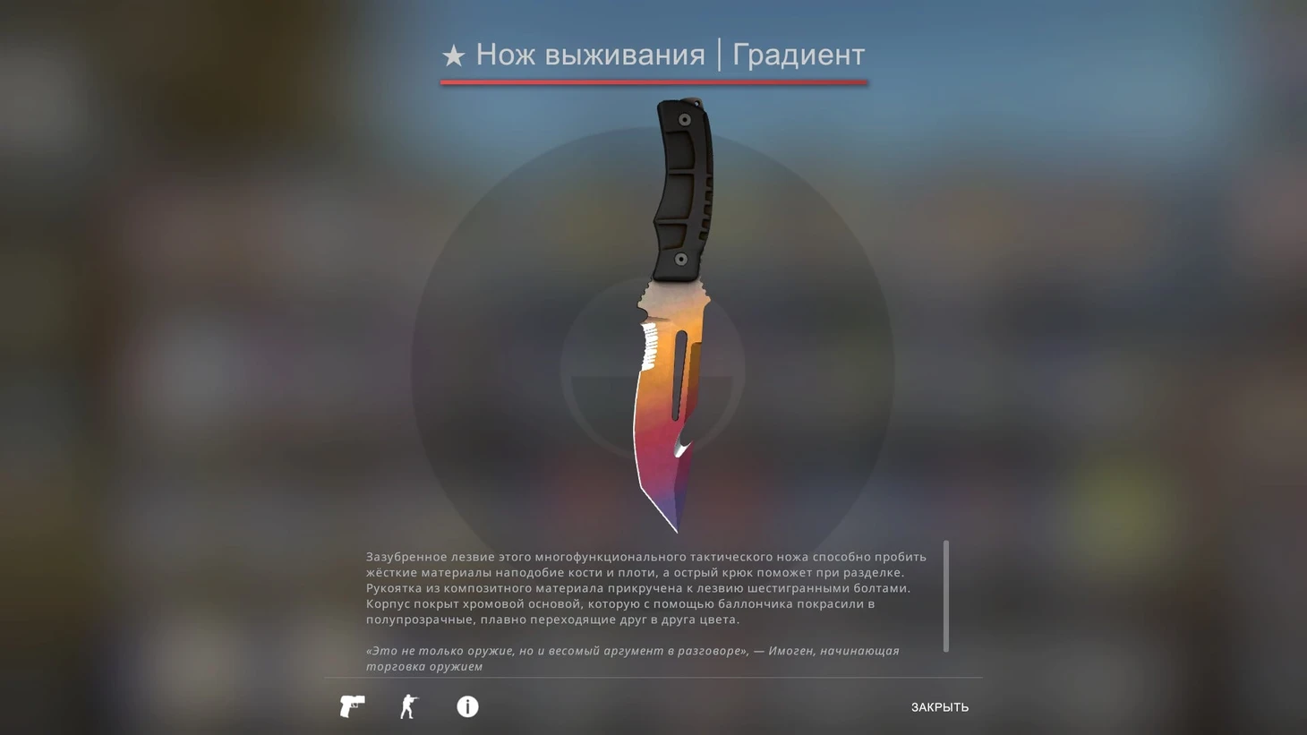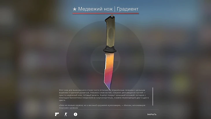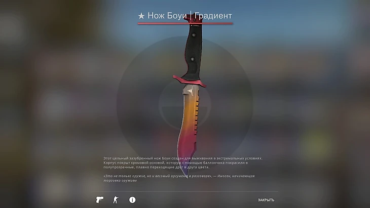 Также много ножей Градиент: Боуи за 25 тысяч, Коготь за 65 тысяч, Медвежий нож за 35 тысяч, Нож Выживания за 28 тысяч рублей.