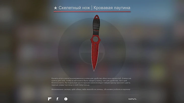 В эту категорию попадают почти все ножи Алексея: Бабочка Зуб Тигра «прямо с завода» с установленным СтатТреком за 95 тысяч, Скелетный нож Кровавая паутина в качестве «после полевых», но с флоатом близким к «немного поношенное» за 83 тысячи.