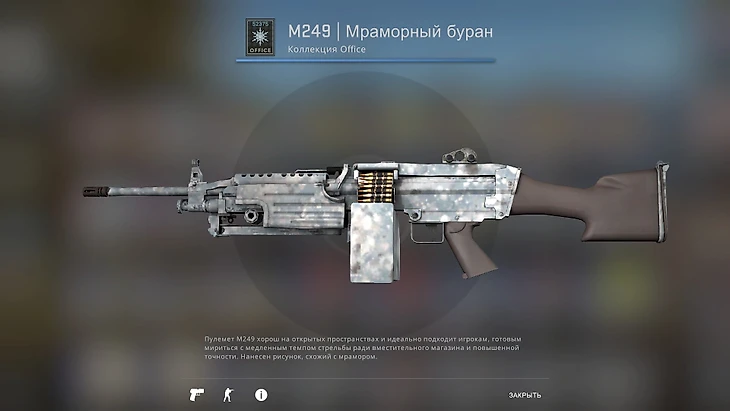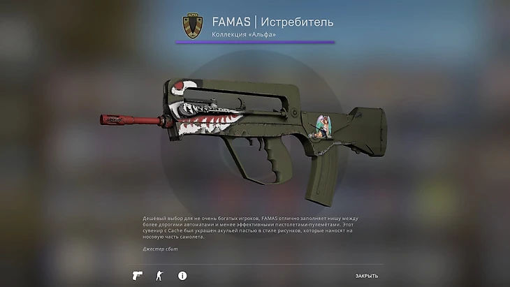 В инвентаре Хард Плея много старых скинов из коллекций и кейсов 2013 года, например, M249 Снежный буран, Famas Истребитель и SG553 Ультрафиолет. У всех качество «прямо с завода», а стоят они 9, 7,4 и 7 тысяч соответственно. Выглядят они просто ужасно, а такая цена вызвана лишь редкостью.