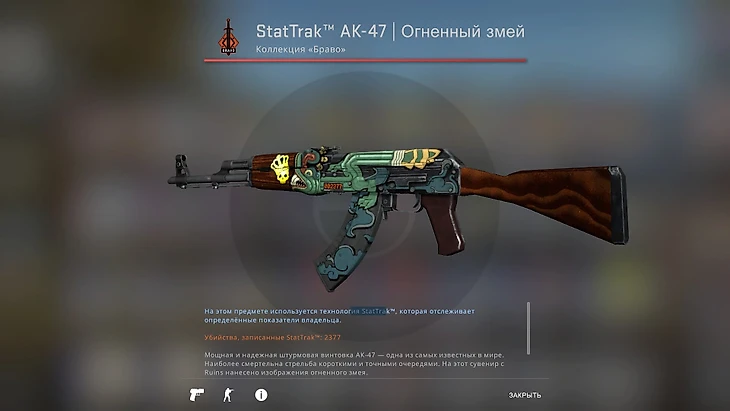 Три StatTrak AK-47 Огненный змей в качествах «после полевых», «поношенное» и«прямо с завода». Они стоят 150, 200 и 750 тысяч рублей соответственно!