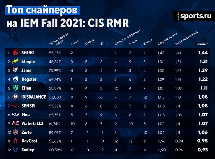 Рейтинг снайпера Gambit – 3-й по величине среди всех показателей игроков в 2021-м. Лучше Sh1r0 на IEM Fall отыграли только Jame на Cs_summit 7 (1,44) и S1mple на IEM Cologne (1,45). Кажется, у NAVI в Стокгольме будет очень серьезный соперник.