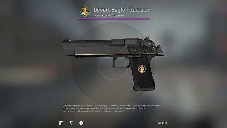 У Сени есть и черный Дигл Заговор за 290 рублей в качестве «немного поношенное». Как и Механо-пушка, на нем отлично смотрелись бы практически любые наклейки. Но у него эти скины полностью чистые.