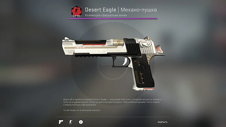 С Диглом Механо-пушка раньше играли любители белых скинов, но после появления Потока информации его популярность и цена заметно упали. Сейчас такой в качестве «после полевых» стоит 230 рублей.