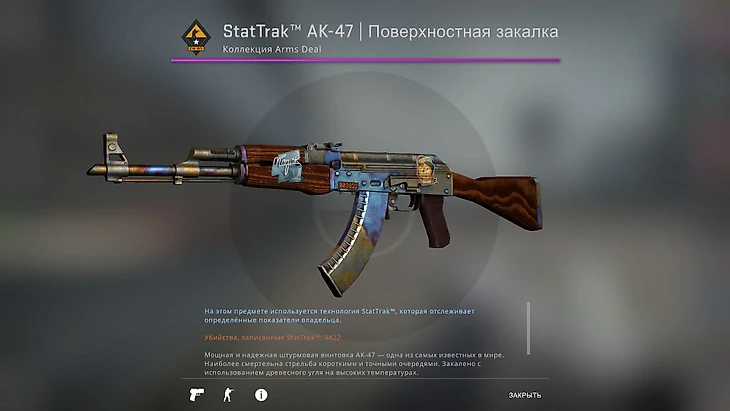Основной AK-47 Сени – Поверхностная закалка с установленным счетчиком фрагов за 13 тысяч рублей (качество «закаленное в боях»). С него сделано почти 4 тысячи киллов.