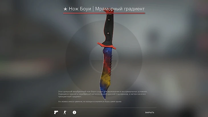Любимый нож Сени, с которым он чаще всего играет на стримах, – Нож Боуи Мраморный градиент за 17 тысяч рублей в качестве «прямо с завода».