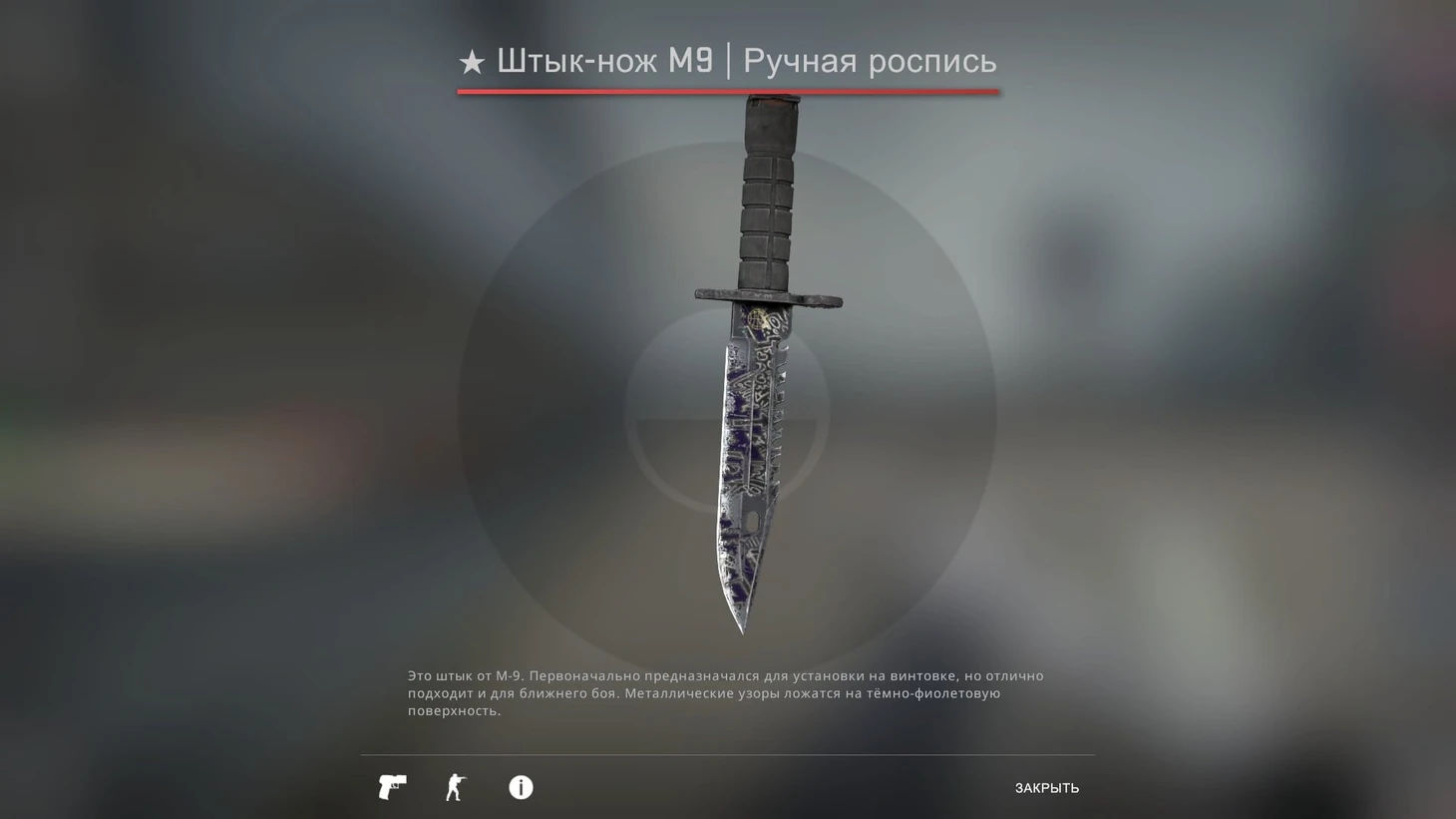 Еще у Сени есть 2 Штык-ножа М9 – Кровавая паутина и Ручная роспись в качествах «поношенное» и «закаленное в боях». Стоят 27 и 17 тысяч соответственно.