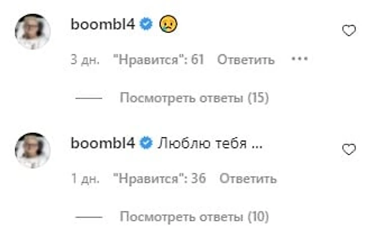 Обновление от 8 июня: Бумыч и Лика развелись, в своем телеграм-канале Кирилл сказал: «Друзья, только что вышел из МФЦ. Могу заявить, что мы разводимся наконец, потому что там что-то с головой конкретное. Хочется извиниться за все, что было вкинуто в интернет.
