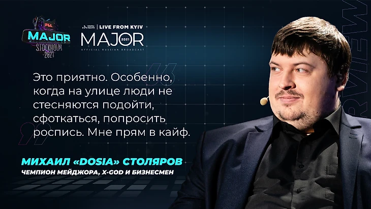 PGL Major Stockholm 2021 продолжается, и одним из самых ярких моментов турнира стало появление Михаила «Dosia» Столярова в русскоязычной студии аналитики. Чемпион PGL Major Krakow ярко и с удовольствием ворвался в эфир.