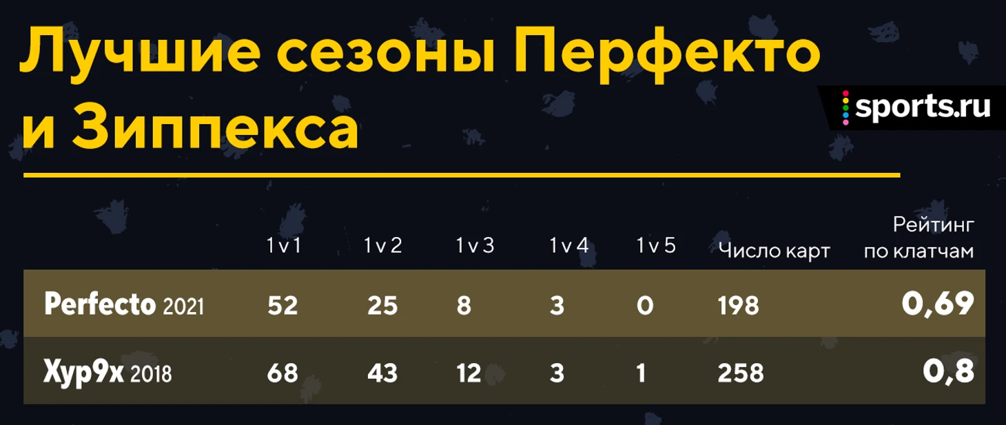 Самый честный способ выявить победителя в дуэли между Зиппексом и Перфекто – сравнить не их клатч-способности за всю карьеру, а отдельные сезоны. Лучший год Ильи – 2021-й, в то время как датчанин был на пике в 2018-м.