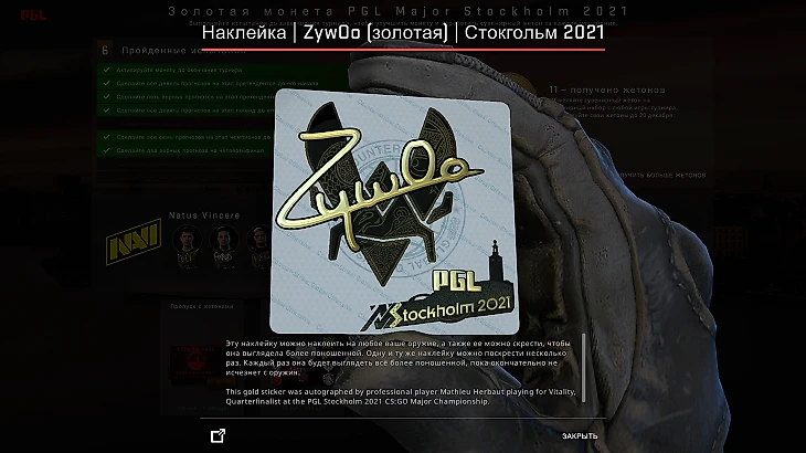 При всей гениальности в игре ZywOo не смог придумать достойный стикер. Нижняя линия Z как будто слепливает все остальные буквы в кучу и делает общую картинку невзрачной. Такой стикер не хочется наклеивать на AWP.