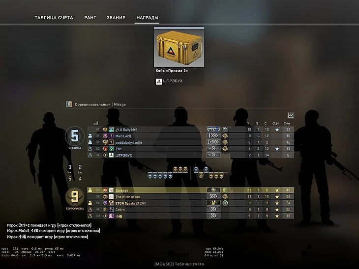 Окей, искать логику в системах от Valve бесполезно. Что же еще могло вызвать подбор таких пестрых званий? Может быть, у меня на аккаунте низкий статус доверия? Сомневаюсь, ведь я не ливал из матчей уже несколько лет, очень редко кого-то кикаю, не стреляю по тиммейтам, а иногда даже демки в Патруле просматриваю. Настоящий законопослушный каэсер.