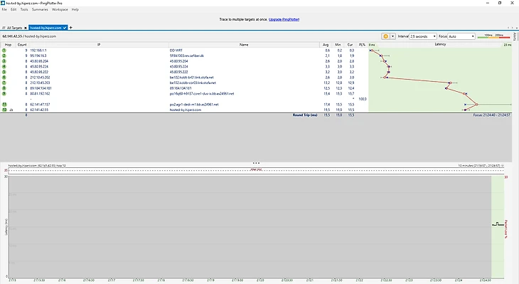 С помощью специальных программ, например PingPlotter, можно отследить весь путь трафика от вас до сервера игры. На скриншоте ниже видны задержки – красные горизонтальные линии.