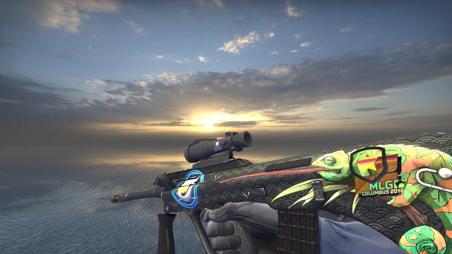 На довольно тусклом фоне изображен зеленоватый хамелеон с протянутым на всю пушку языком. Скин подкупает лишь тайной редкостью и низкой ценой: от 300 рублей за «закаленку» до 450 за «прямо с завода».