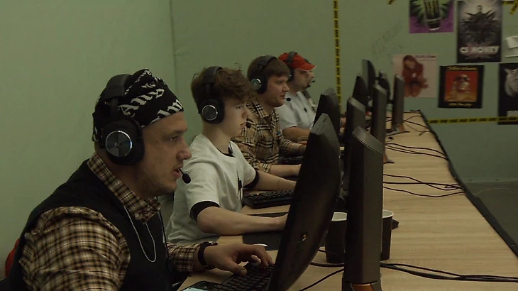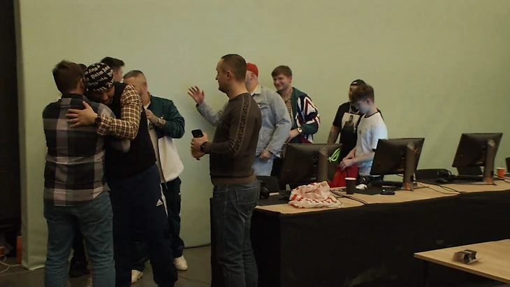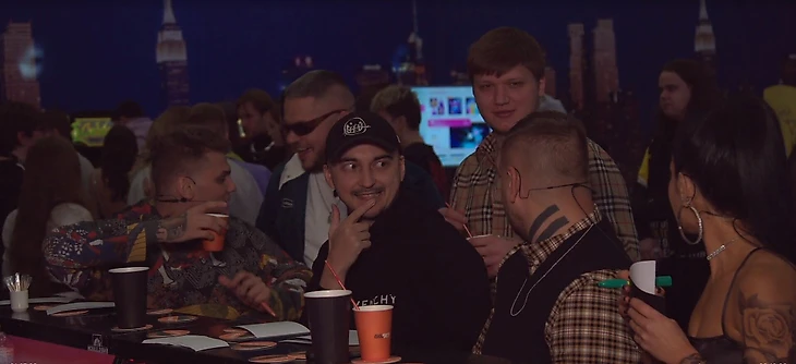 Тусовка началась в «Киберподвале» – комнате, сделанной в стиле компьютерных клубов нулевых. Для полноты атмосферы там поставили старые мониторы и девайсы, а люди играли в игры той эпохи. Бит и Эдвард сыграли 1 на 1 в Quake 3. Выиграл, конечно же Эдвард. Он сказал, что почувствовал себя в родном доме, Бит же впервые играл в такую старую игру (Квейк 3 вышел раньше, чем родился Валера).