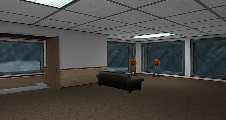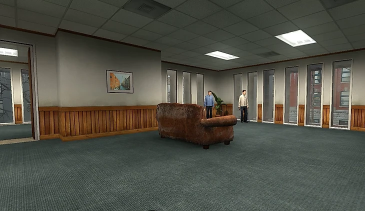 Такой была Office в первых версиях Counter-Strike. После выкупа прав на нее у Александра Манилова, Valve поправила визуал карты, сделав ее более привлекательной по тем меркам. Для начала двухтысячных локация действительно выглядела неплохо.