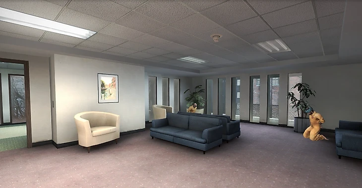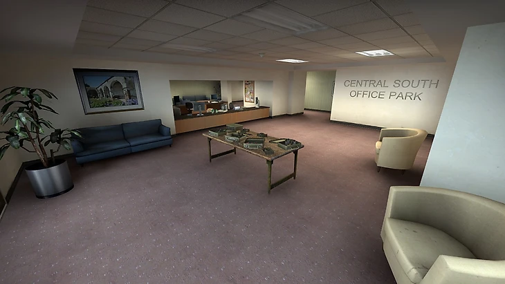 С выходом Global Offensive на Office больше нельзя было перемещать некоторые офисные объекты и использовать их для получения преимущества (раньше за большим реквизитом часто прятались). Также карта стала гораздо более яркой и детализированной, а заложники в CS:GO реально похожи на пленных, а не просто на офисных рабочих.