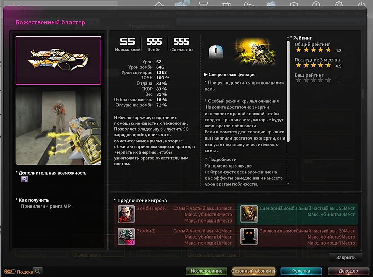 Помимо классического набора оружий, в CS NS можно купить дополнительные пушки – за реальные деньги. Эти пушки выглядят довольно футуристично, и, что самое главное, они гораздо мощнее стандартных аналогов. К примеру, урон АК-47 – 28, а урон оружия под названием «Божественный бластер» – 62. Разница колоссальна.
