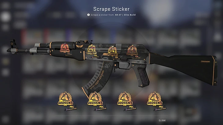 Золотые наклейки Virtus.pro и Godsent отлично подойдут на пушки из серии «Элитное снаряжение» – AWP, AK-47 и P90. Сами скины стоят дешево: Калаш в качестве «прямо с завода» можно купить за 400 рублей, а AWP «после полевых» – за 700. Наклейки обойдутся дороже: золотые VP – 400 рублей за штуку, а золотые Godsent – по 250 рублей.