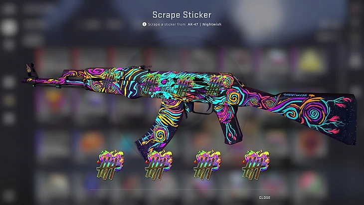 Новый AK-47 Nightwish не понравился многим игрокам, хотя игра цветов на нем интересная и оригинальная. Сделать его еще ярче можно с помощью четырех голографических наклеек Счетчик убийств из капсулы операции «Хищные воды». Они стоят всего по 60 рублей за штуку.