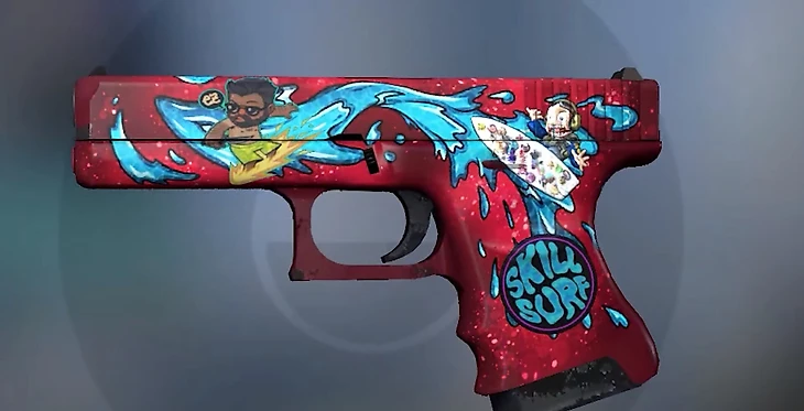 На красный Glock-18 Дух воды, стоящий от 260 до 800 рублей, отлично подойдут наклейки серферов: сезон серфинга из коллекции CS20 за 30 рублей, Серфер Ава и Серфер К из капсулы «Серфинг в хищных водах». В зависимости от скина на их серфе они стоят от 40 до нескольких сотен рублей.