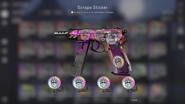 Голографические наклейки BIG и G2 с мейджора в Стокгольме отлично сочетаются с белыми и розовыми скинами. Лучшим вариантом, конечно, будет M4A1-S или Дигл в раскраске Поток информации, но отлично подойдет и бюджетная CZ-75 Сян-лю за 600 рублей в качестве «прямо с завода».