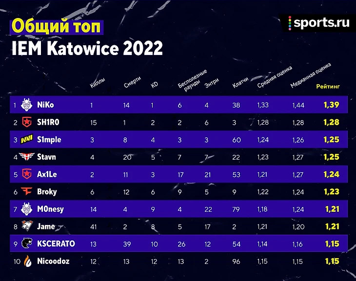 Рейтинг групп Катовице: Нико – лучший, Широ и Симпл – в топ-3