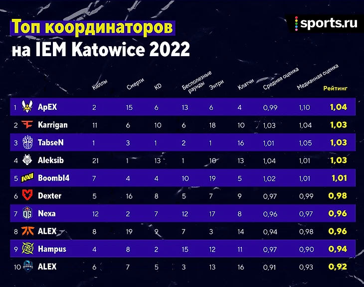 Важное замечание №1: в рейтинге координаторов не упоминаются капитаны-снайперы, поскольку у них другой игровой стиль. Они оцениваются в категории снайперов.