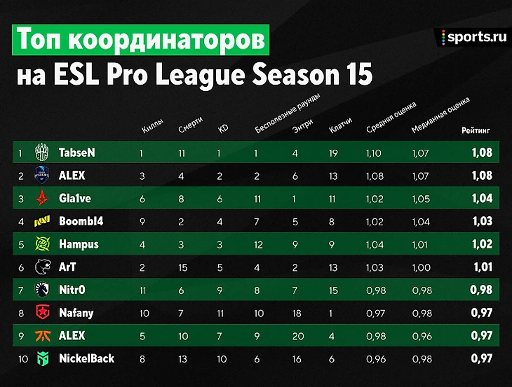 Важное замечание №1: в рейтинге координаторов не упоминаются капитаны-снайперы, поскольку у них другой игровой стиль. Они оцениваются в категории снайперов.