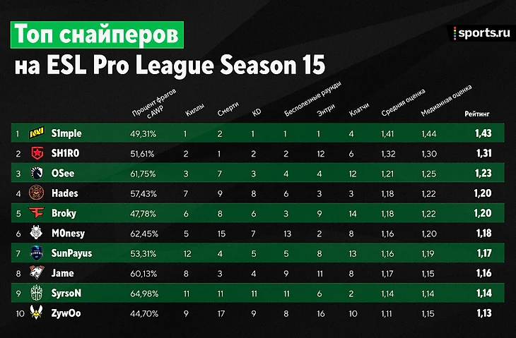 Что касается Хэдтрика: 1,08 и 42-я строчка среди 122 игроков отражают вполне крепкий уровень Даниила. Конечно, костяк команды Блейда идет в топ-17, но для дебютного турнира весьма неплохо.