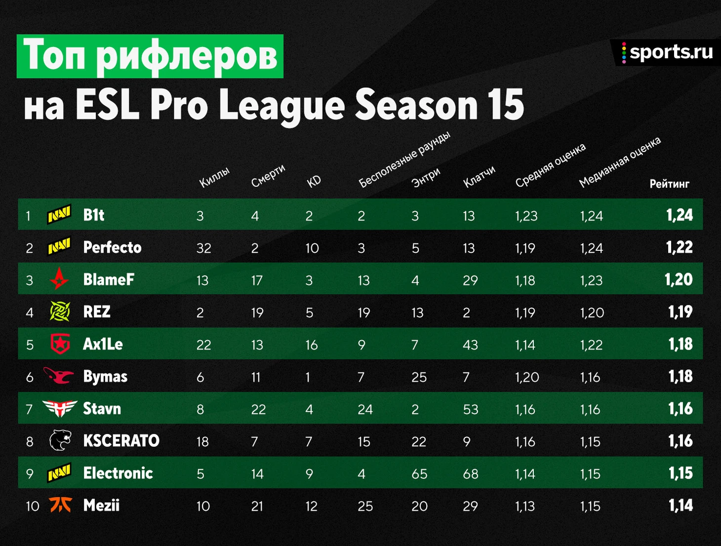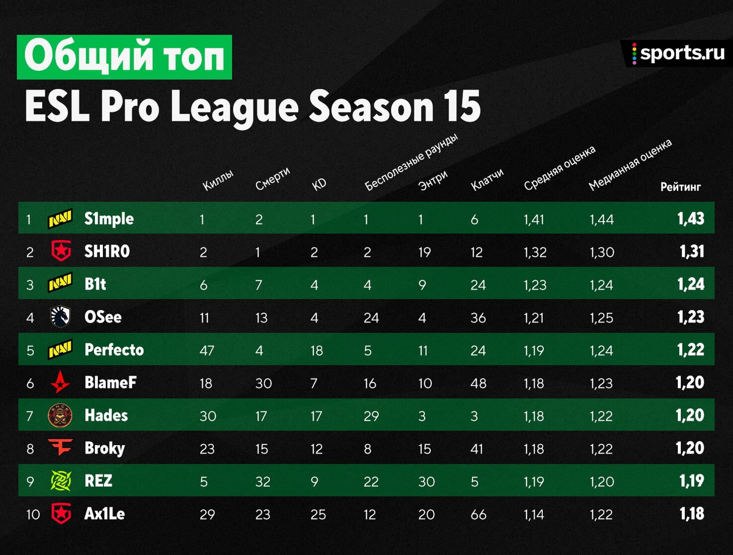 Рейтинг групп ESL Pro League: сразу 3 игрока NAVI − в топ-5