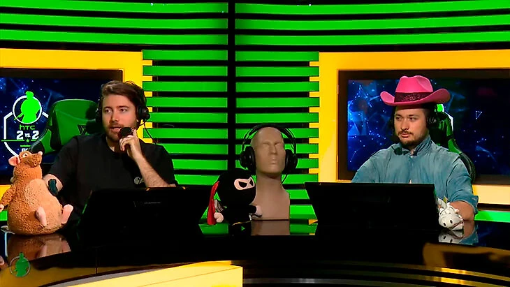 Несерьезная атмосфера турнира ощущалась уже при виде стола в студии комментаторов: он был завален мягкими игрушками и прочим реквизитом (кажется, кто-то ограбил кукольный театр).