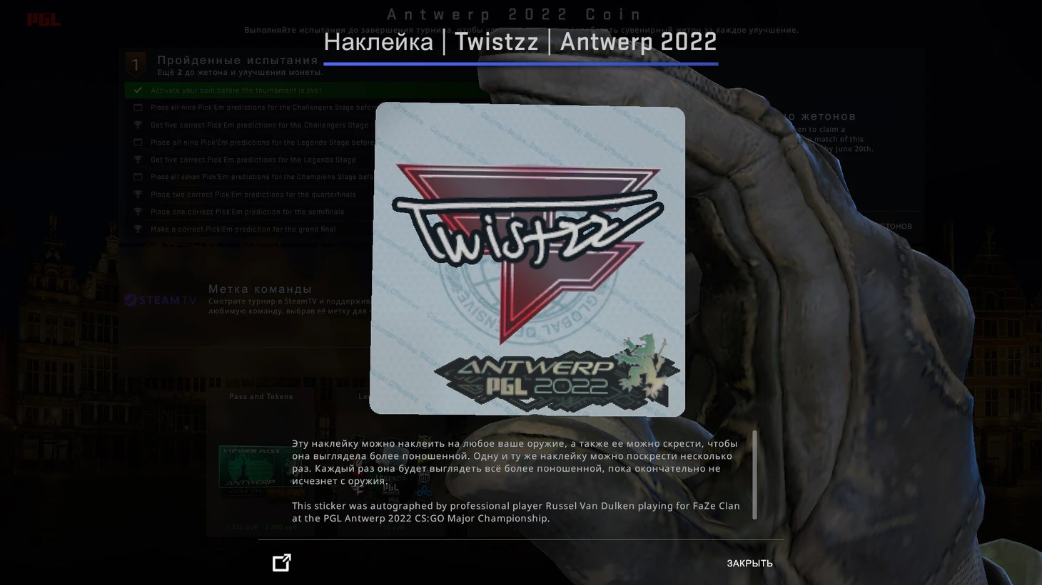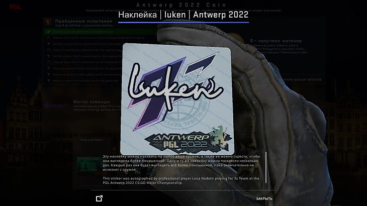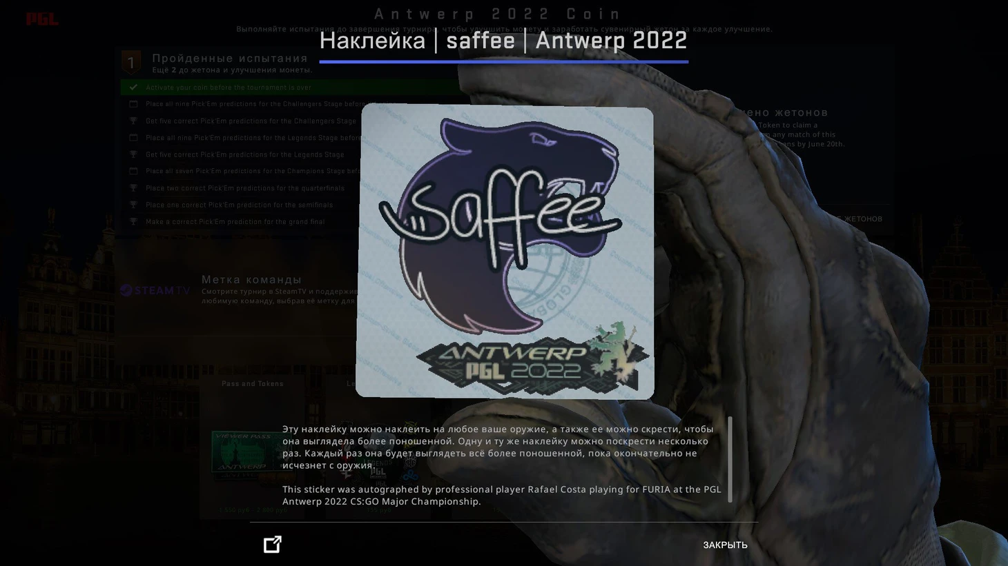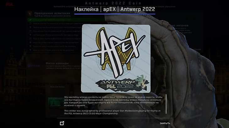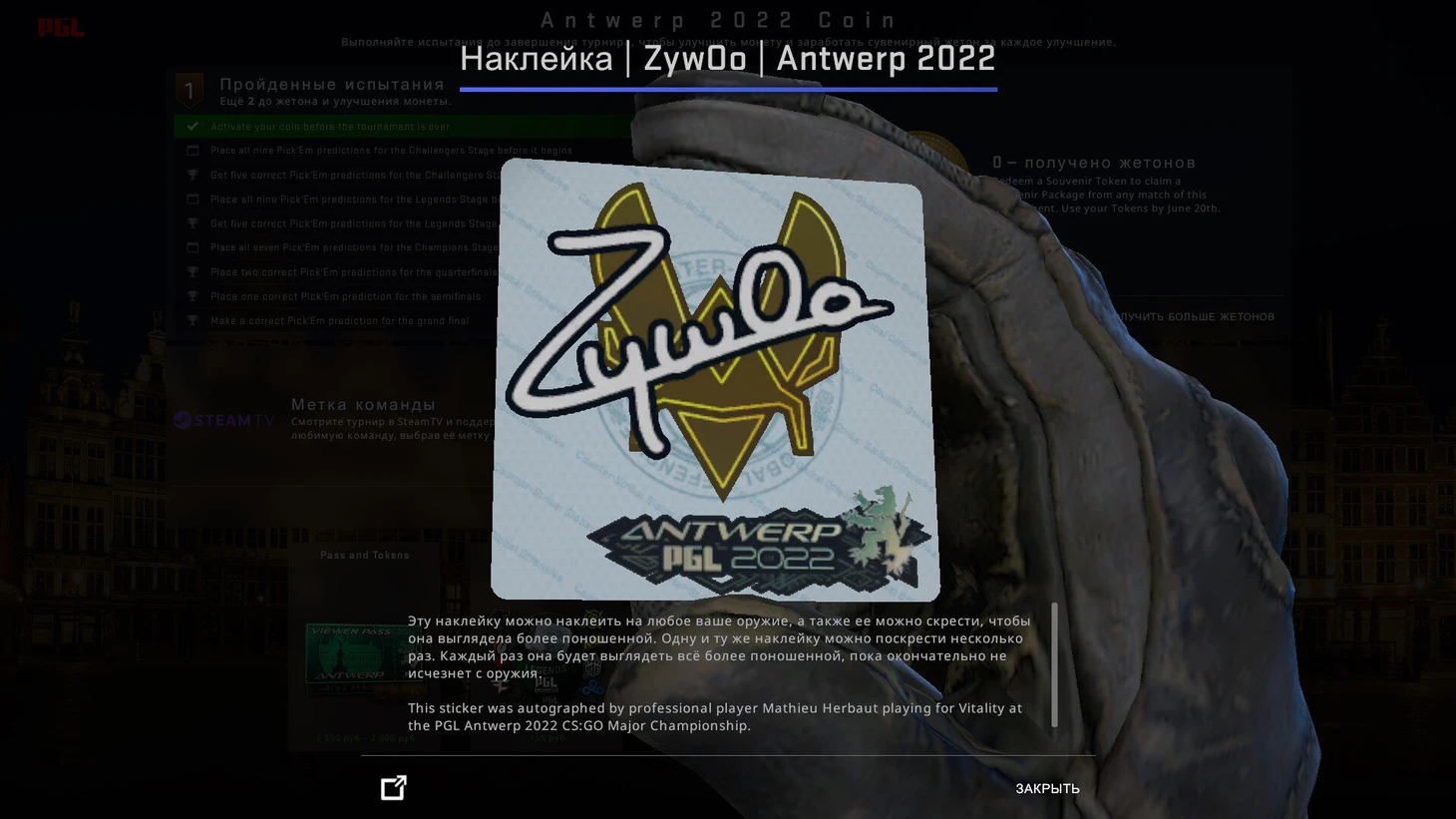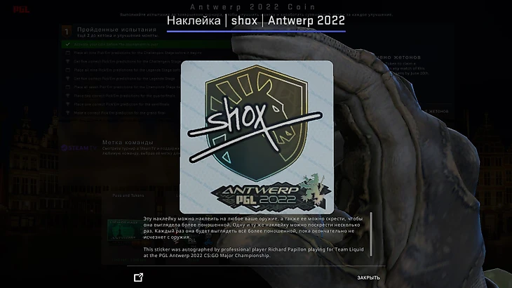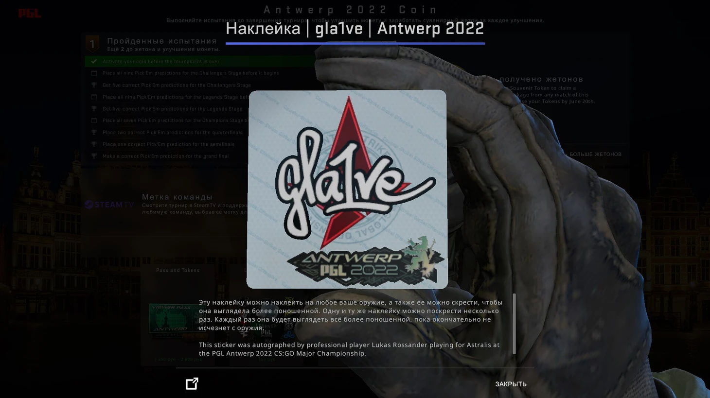 Наклейки автографов игроков доступны в четырех качествах: обычном, голографическом, блестящем и золотом. Получить их можно, открывая капсулы с автографами в игре или покупая на торговой площадке. Потом их можно либо наклеить на скины из инвентаря, либо продать на торговой площадке.