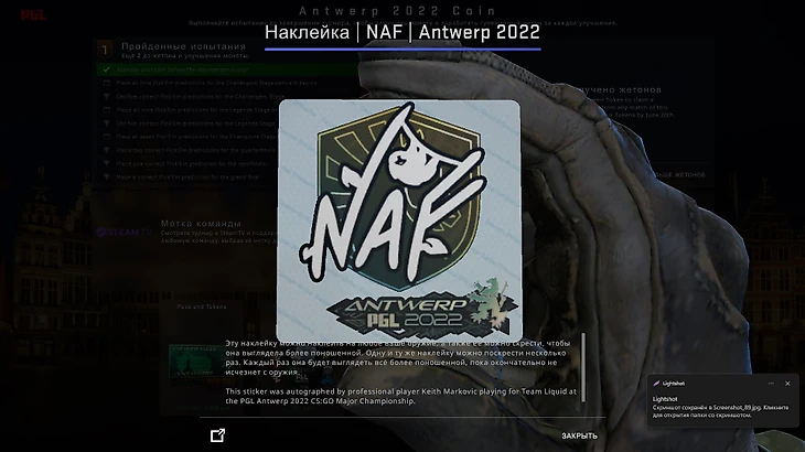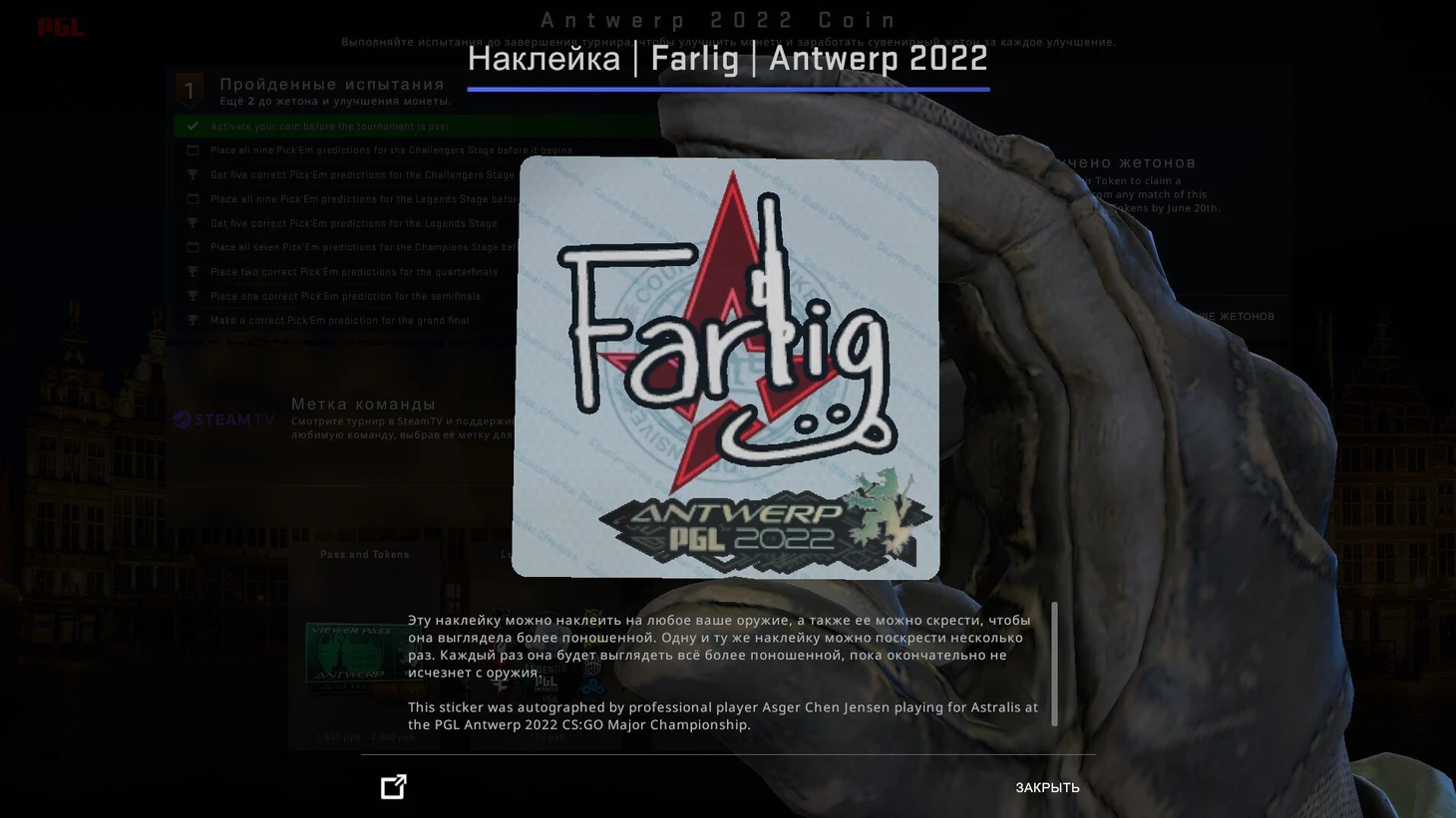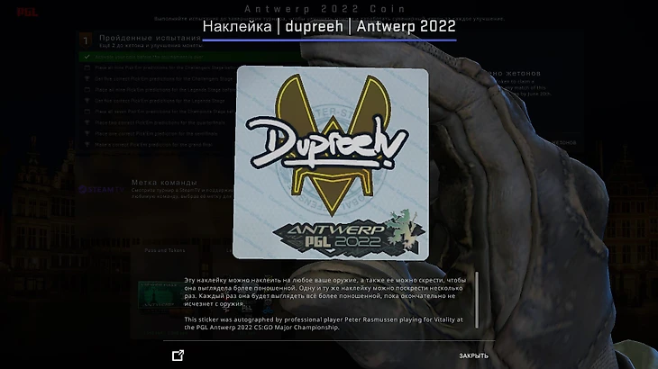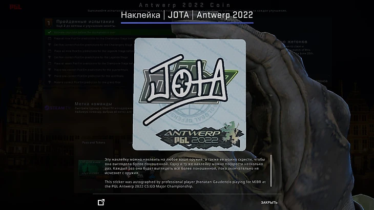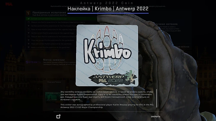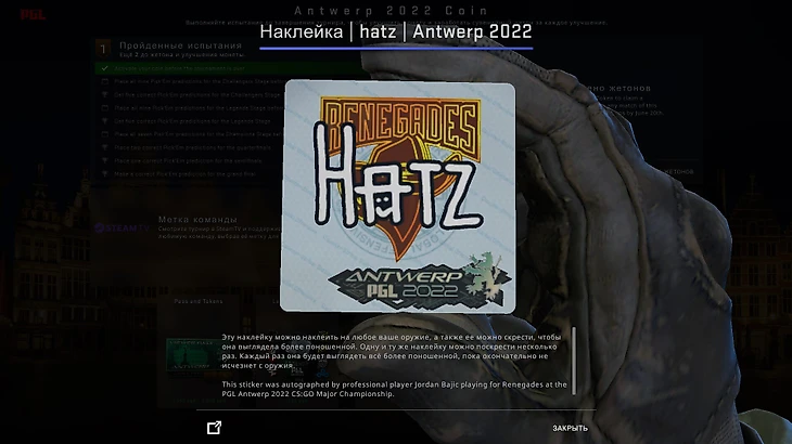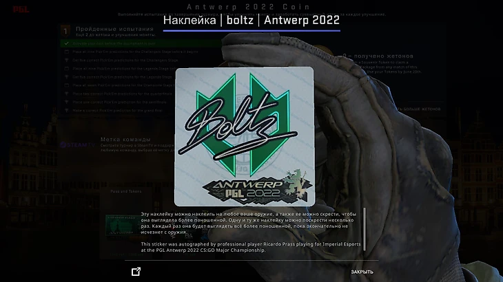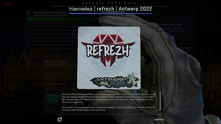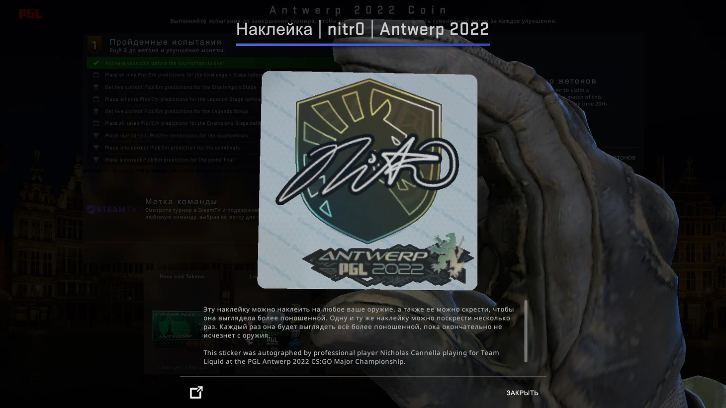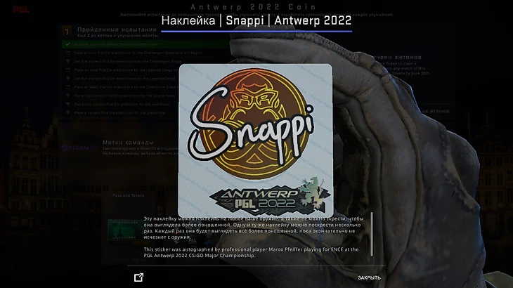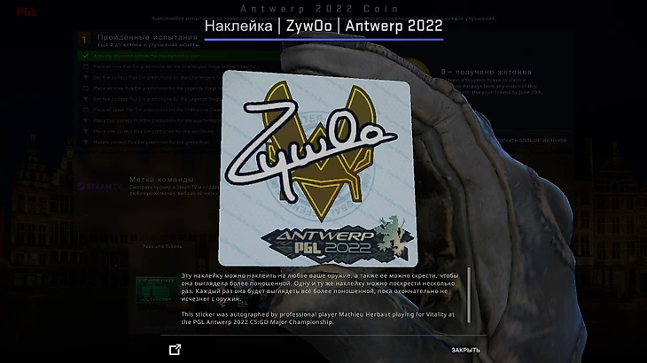 Наклейки автографов игроков доступны в четырех качествах: обычном, голографическом, блестящем и золотом. Получить их можно, открывая капсулы с автографами в игре или покупая на торговой площадке. Потом их можно либо наклеить на скины из инвентаря, либо продать на торговой площадке.