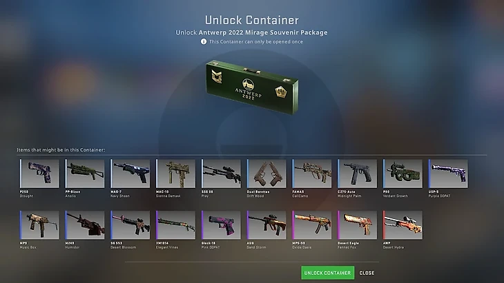 Всего есть 7 сувенирных наборов, связанных с картами, которые играют на мейджорах. Valve очень редко их обновляет, поэтому на PGL Major Antwerp, такие же наборы, что и на мейджоре в Стокгольме.