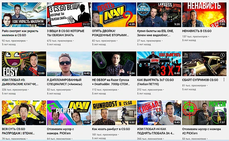 На роликах про учебу в однотипном формате далеко не уедешь, и Райз это понимал. Поэтому он начал создавать видео с кликабельными заголовками: «MLG CS:GO Как обыграть Фнатик?!», «Почему S1mple никогда ничего не выиграет», «Провал Фнатик, взлет NAVI».