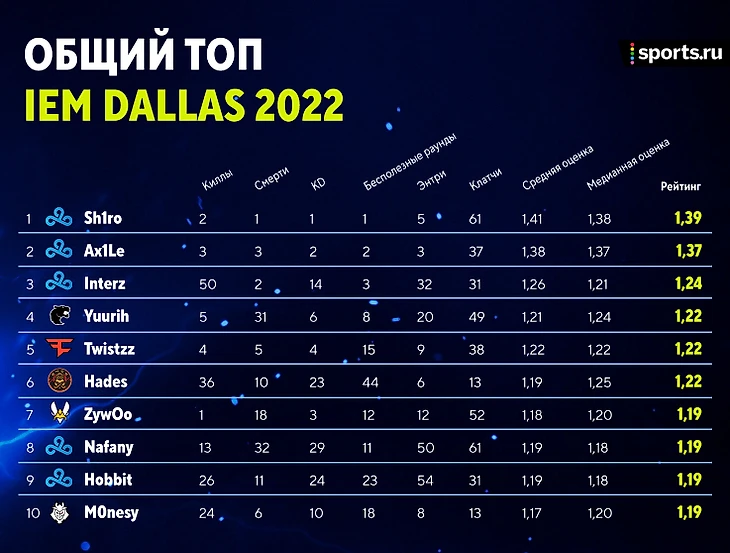 Рейтинг IEM Dallas: Широ, Аксиль и Интерз – лучшие, Монеси – в топ-10
