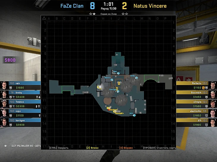 Вы наверняка помните гениальный клатч Бита в финале Кельна против Faze. Этим моментом Валера выиграл Эншент. Бит взял не стрельбой, а хитростью. Сначала кинул смок на бомбу и сделал фейк. Твистз забайтился и прострелял в смок, а в это время Валера его обошел и убил, затем просто сел в дым и раздефал С4.