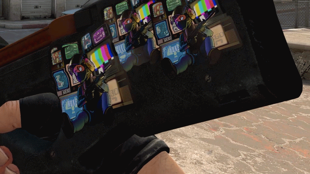 Вторая по популярности наклейка на реддите отсылает нас к телевизорам, которые есть на многих картах. На них переливается не только логотип CS:GO, но и изображения многих популярных карт: Даста, Миража, Кэша и Нюка.