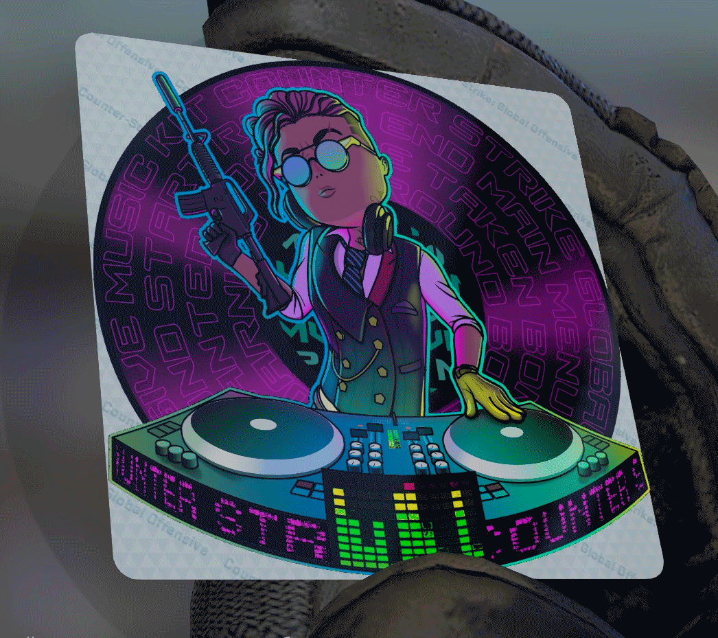 Красивый анимированный стикер, на котором изображен диджей-спецназовец. Ее главный козырь – переливающиеся виниловые пластинки, которые будут очень красиво смотрятся во время просмотра пушки.
