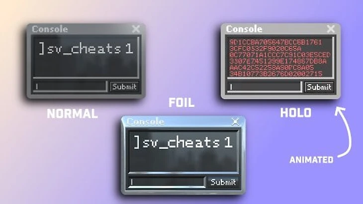 Еще одна популярная в Мастерской наклейка – «Консоль разработчика». В зависимости от качества стикера, вам будет показываться либо команда «sv_cheats 1», с помощью которой можно включить много внутриигровых читов, либо много красных строчек с ошибками, которые очень часто появляются во время матчей.
