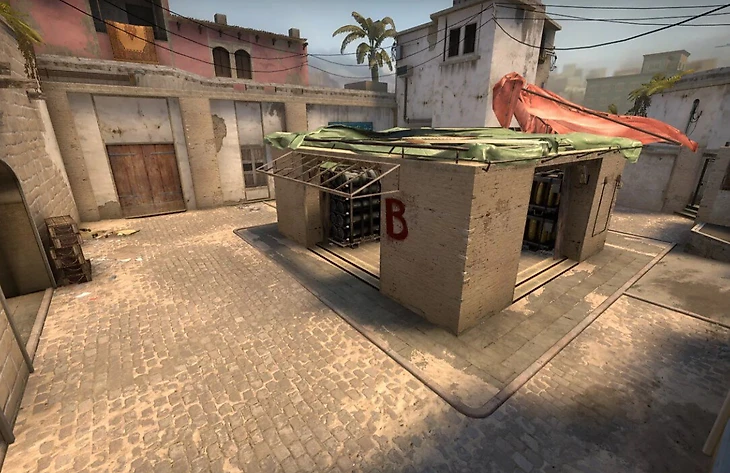 Мираж – довольно большая карта, поэтому на ней круто играть и в защите, и в атаке. В обороне ты выбираешь самую удобную позицию из множества желаемых. Возьмем например опорника Б – роль, которую все ненавидели еще несколько лет назад, ведь тогда весь геймплей заключался в прыжках на машине и быстрой смерти в случае раша.
